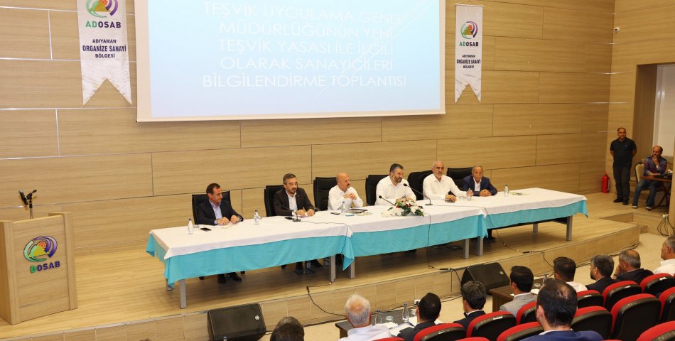 Sayın Sanayi ve Teknoloji Bakan Yardımcısı Oruç Baba İnan, Sayın Adıyaman Valisi Dr. Osman Varol, Sayın Adıyaman Milletvekili Hüseyin Özhan'ın Adıyaman organize sanayi bölgesindeki sanayicilerimiz ile yeni teşvik yasası üzerine istişare toplantısı gerçekleştirdi.